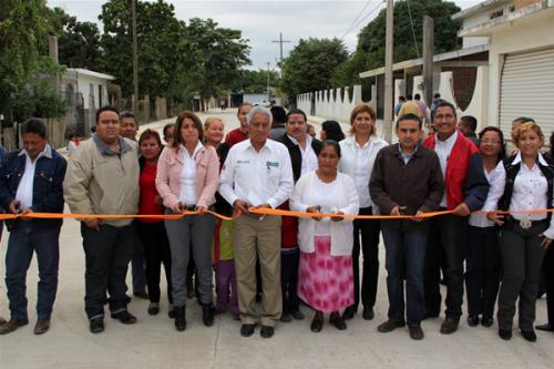 Finalmente en la colonia Ampliación Emilio Portes Gil se inauguraron 301 metros lineales de pavimentación de concreto hidráulico de la calle Lerdo de Tejada con una inversión de más de un millón 829 mil pesos, de igual forma en la colonia Adolfo López Mateos se repusieron 28 tomas y descargas domiciliarias aplicando una inversión superior a los 253 mil pesos.