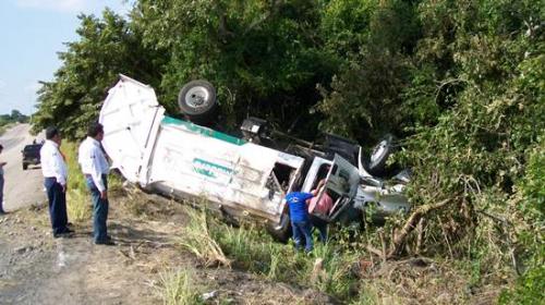 Sin dar a conocer los datos personales de los heridos que sufrieron raspaduras y golpes en diferentes partes del cuerpo, el primer peritaje arrojó que la unidad recolectora de basura, se desplazaba a exceso de velocidad y posiblemente al reventar un neumático, se salieron de la carretera y terminó en volcadura.