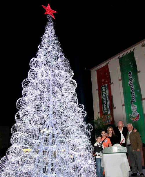 En un ambiente de fiesta decembrina y ante el entusiasmo de cientos de familias victorenses y visitantes en esta ciudad capital, la noche del jueves 7 de diciembre se llevó a cabo el tradicional encendido del majestuoso y colorido pino navideño que refleja los sueños, las esperanzas, los buenos deseos, la alegría, el esfuerzo y el trabajo de los tamaulipecos.