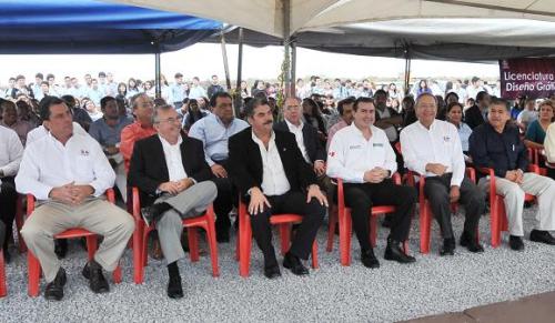 -Participa en la colocación de la primera piedra de campus universitario en donde participan empresarios, edificio que albergara más de 600 alumnos que deseen continuar con su preparación profesional.