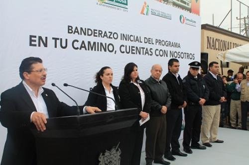 Reynosa, Tamaulipas.-Pidiendo a los conacionales que adopten medidas de seguridad para viajar tranquilos por las carreteras de el estado de Tamaulipas esta mañana el Secretario General de Gobierno Jaime Carlos Morelos Canseco Gómez dio arranque oficial del programa “En tu camino cuentas con nosotros” en donde anuncio habrá un gran despliegue de seguridad para garantizar el viaje seguro de quienes viajan por las carreteras de Tamaulipas sobre todo de los paisanos quienes desde hace un par de días han empezado a arribar a esta franja fronteriza.