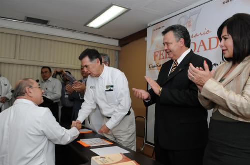 Acompañado del director del nosocomio, Jorge Salinas Treviño y de la secretaria general del Sindicato Único de Trabajadores al Servicio de los Poderes del Estado de Tamaulipas (SUTSPET) Blanca Guadalupe Valles Rodríguez, el funcionario entregó reconocimientos al personal con 27 años de servicio continuo.