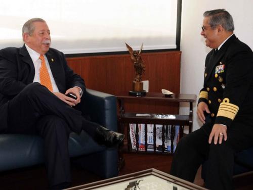 El Gobernador de Tamaulipas fue recibido por el director del Centro de Estudios Superiores Navales de la Secretaría de Marina, Almirante Carlos Quinto Guillén, quien dijo que este tipo de exposiciones permite a los alumnos de esa honorable institución ampliar su conocimiento de un Estado en constante trasformación.