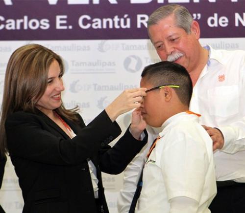NUEVO LAREDO, Tamaulipas.- El Gobernador Egidio Torre Cantú y su esposa María del Pilar González de Torre, presidenta del Sistema DIF Tamaulipas, entregaron 2 mil 921 anteojos a niños y niñas de primaria y secundaria de esta ciudad.