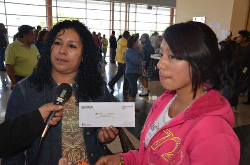 Al igual, la señora María Santos Mendoza Ortiz dijo: “Estoy súper agradecida por ser la primera vez que recibimos la beca; yo me encuentro sin empleo, imagínese como me encuentro contenta con mi hija”.