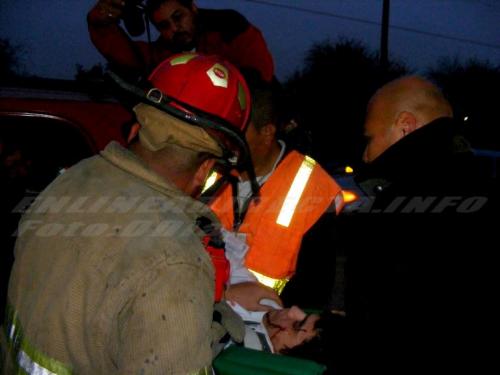Con la ayuda de otros bomberos y personal de la unidad medica, sacaron a la persona lesionada siendo identificada como Oscar Vázquez Villarreal, quien se dolía de su cuerpo por los golpes sufridos en el choque.