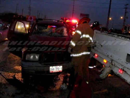 Reynosa, Tamaulipas.-Con severas heridas en su cuerpo y perdidas materiales en su unidad, un conductor choco con otra unidad para posteriormente quedar su cuerpo prensado, afortunadamente el lesionado fue rescatado y llevado a un nosocomio para su atención medica.