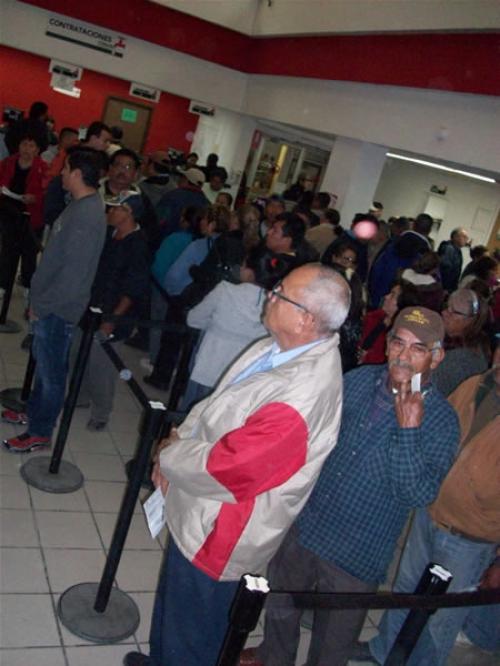 Filas llenas de usuarios en el módulo central de la col. Longoria para aprovechar esta eliminación del cobro pero también se presentan casos donde se hace lo contrario…