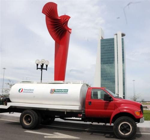 El director general de la Comisión Estatal del Agua de Tamaulipas, Jaime Felipe Cano Pérez, dijo que por instrucciones del Gobernador Torre Cantú se reparó y equipó el camión cisterna a petición expresa del alcalde Jorge Luis Monita Silva, quien personalmente recibió la unidad renovada.