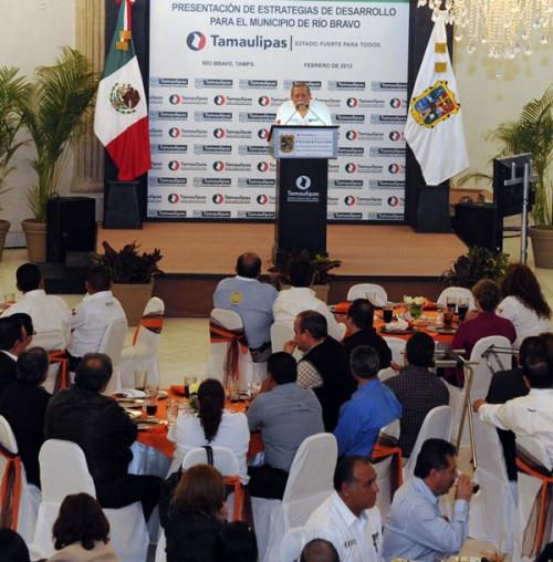RIO BRAVO, Tamaulipas.- En un encuentro con la sociedad riobravense, el Gobernador Egidio Torre Cantú presentó las metas que su gobierno ha proyectado para el presente 2012 y cuyo objetivo final es tener regiones modernas, progresistas, acorde al Tamaulipas Fuerte que impulsa desde el primer día de su mandato constitucional.