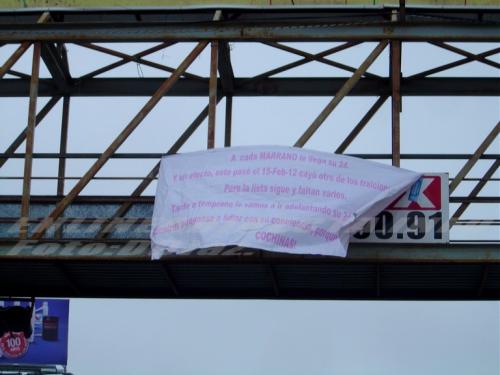 Reynosa, Tamaulipas.-Desde temprana hora, fueron vistas en diversos puntos de la ciudad, mantas con mensajes subliminales desconociéndose quienes o quien las puso en los puentes peatonales causando misterio entre quienes las observaban al pasar por rutas muy concurrentes.