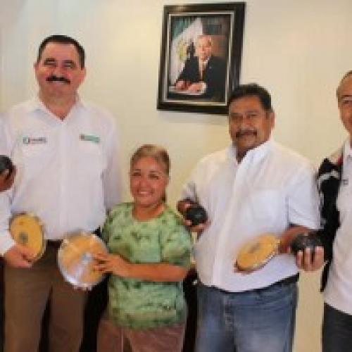 La Presidenta de la Asociación de deportistas con discapacidad Sra. Edith Villegas, así como el entusiasta deportista José Socorro Almanza, recibieron la donación de los discos oficiales, las pelotas de hierro de diferentes medidas, que son utilizadas para sus entrenamientos.