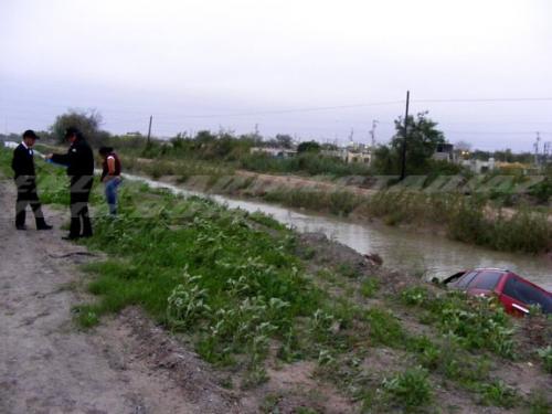Reynosa, Tamaulipas.-Una conductora que viajaba a exceso de velocidad, termino yéndose con su unidad a un canal de riego de aguas negras logrando salvarse, ya que ese dren se encuentra lleno de agua.