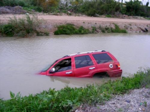 La conductora quien omitió su nombre y que se encontraba sumamente asustada y mojada, comentó que ella tripulaba su camioneta Jeep, color roja, modelo reciente, con placas de circulación 428-TPD-2 de Tamaulipas la que quedara dentro del canal de desalinizador de aguas negras que se encuentra a un costado del libramiento antes citado.