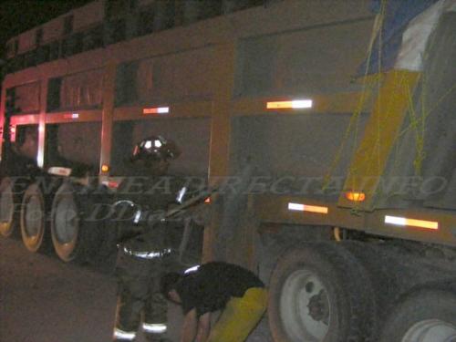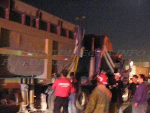 Que fue entonces que al subir su pesada unidad de doble remolque afortunadamente logro dominarlo, ya que de no ser así se hubiera volcado y los daños hubieran sido mayores, que se le reventó uno de las líneas que van al tanque del disel y se dañaron las dos llantas delanteras luego de recibir el fuerte golpe al subirse a dicho camellón.