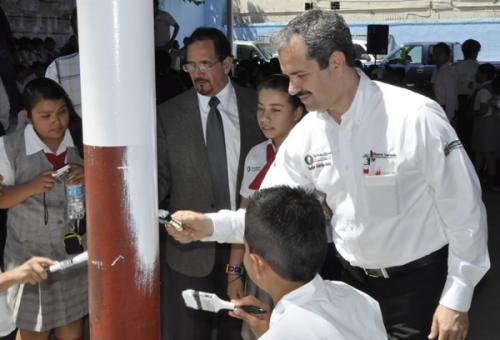 El Presidente Municipal estuvo acompañado por las regidoras Josefina Yolanda Castillo Muñiz y Adela Sandoval Pérez; el subdirector de Educación, Ciencia y Tecnología Fernando Méndez Ortega y el supervisor escolar Julián Juárez.
