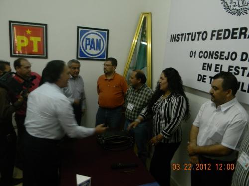Luego tomó la palabra el candidato del PAN, para ofrecer de manera breve y clara, el agradecimiento a los integrantes de su partido que le dieron la confianza para ser su candidato, y a los funcionarios del IFE por recibir la documentación que lo acreditaron ayer como candidato oficial de ese partido.