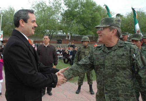 La coordinación de acciones entre Gobierno Municipal y la Secretaría de la Defensa Nacional, se mantiene como prioridad, reiteró el Presidente Municipal, Benjamín Galván Gómez, ante el General de Brigada D.E.M. Carlos García López, Comandante de la Guarnición de la Plaza y reconoció el avance que se percibe en materia de seguridad, para alcanzar el desarrollo, la armonía social y el progreso que los neolaredenses merecen.