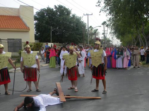 Nuevo Laredo, Tamaulipas.- Con un mensaje de paz y de aliento a las familias que sufren a consecuencia de la violencia y la inseguridad, el obispo de Nuevo Laredo, Gustavo Rodríguez Vega, encabezó la representación del Vía Crucis en unos terrenos ubicados en las calles Tamanzuchale y paseo Colón.