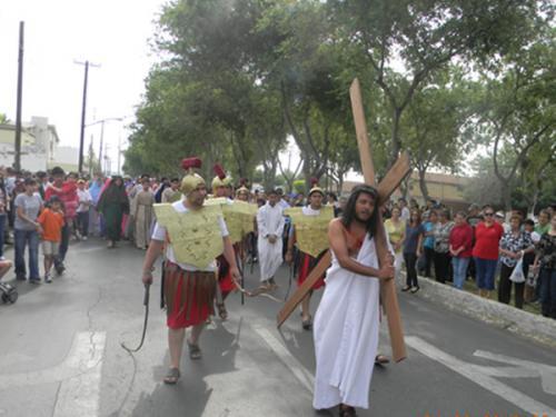 Nuevo Laredo, Tamaulipas.- Con un mensaje de paz y de aliento a las familias que sufren a consecuencia de la violencia y la inseguridad, el obispo de Nuevo Laredo, Gustavo Rodríguez Vega, encabezó la representación del Vía Crucis en unos terrenos ubicados en las calles Tamanzuchale y paseo Colón.