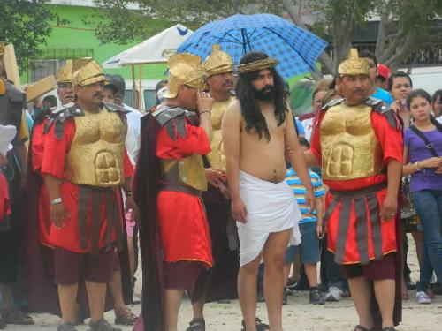 En las parroquias se organizaron las escenificaciones del Viacrucis, en donde participaron vecinos y voluntarios, quienes se ataviaron a la usanza de aquellos tiempos, cuando la región hebrea era gobernada por el imperio romano.