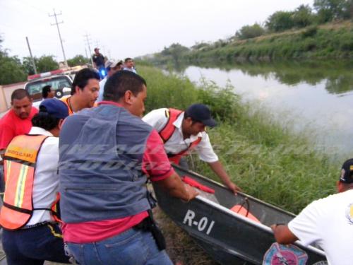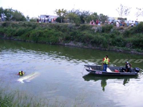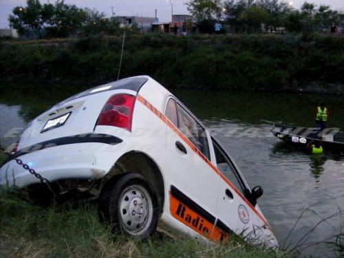 La unidad que se fue al canal es un automóvil Atos, modelo reciente, placas de circulación 18-91-YSL de Tamaulipas con razón social Radiotaxi que era conducido por su chofer y quien llevaba dos personas abordo.