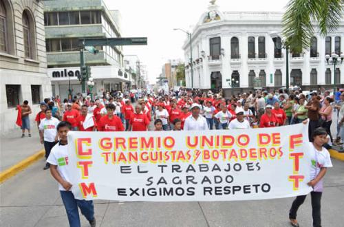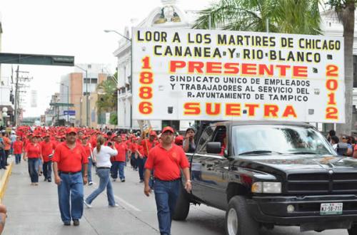 Recordó a los mártires de Chicago, Cananea y Río Blanco y dijo que continuarán exigiendo incremento de sueldo y que cesen aumento a precios de combustible