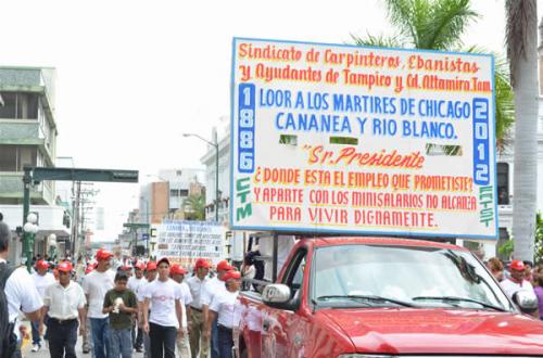 Recordó a los mártires de Chicago, Cananea y Río Blanco y dijo que continuarán exigiendo incremento de sueldo y que cesen aumento a precios de combustible