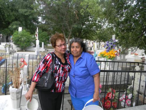 “Venimos a visitar a nuestra suegra, y aunque nunca la conocimos, cada que podemos y más el 10 de mayo, la visitamos y le traemos flores”, dice Paula, mientras María Luisa, quien vive en Houston, Texas, viajó para reunirse con María Luisa para arreglar la tumba de su suegra, a pesar de que hace varios años se separó de su esposo.
