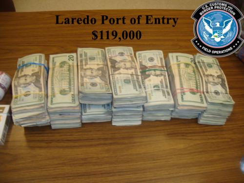 Nuevo Laredo, Tamaulipas.- Un millón 300 mil dólares en droga y 119 mil en efectivo, fueron incautados por oficiales de aduanas y protección fronteriza (CBP, por sus siglas en inglés) el miércoles en dos casos por separado, de acuerdo a Sidney Aki, jefe del puerto.