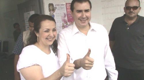 Matamoros, Tamaulipas.- En un ambiente de tranquilidad y en familia, el presidente municipal Alfonso Sánchez Garza acompañado de su esposa Silvia Guerra de Sánchez, arribó a las instalaciones de la preparatoria Juan José de la Garza en punto de las 10:30 de la mañana, para cumplir con su deber cívico, emitir su sufragio en la casilla 585 contigua, misma que se encontraba tranquila y el proceso de votación sin incidentes.