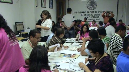 Matamoros, Tamaulipas.- Horas de tensión se vivieron en las afueras del Comité distrital electoral con cede en esta ciudad fronteriza, en el re-conteo de votos para Diputados federales, cuando un centenar de simpatizantes de los partidos políticos en disputa, se apostaron en las puertas de entrada del edificio, siendo necesario que se alertaran a las fuerzas federales para su desalojo.