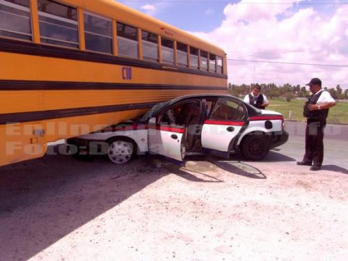 Reynosa, Tamaulipas.-La falta de precaución al conducir y a la imprudencia del otro conductor de un micro de transporte colectivo, provocaron que un taxista se metiera abajo de la pesada unidad dejando como saldo una persona lesionada, así como daños materiales en varios miles de pesos, además de ocasionar un caos vehicular.