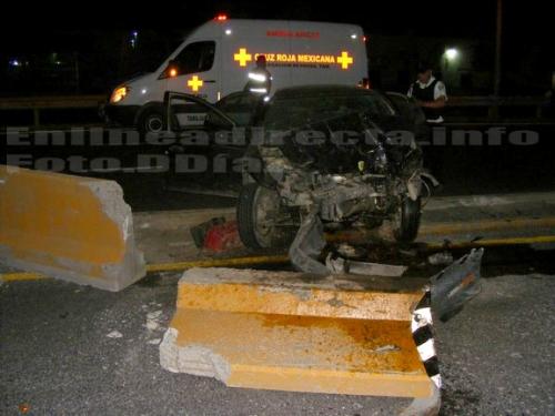 Reynosa, Tamaulipas.-El exceso de velocidad, la falta de alumbrado público y el conducir presumiblemente en estado de ebriedad, ocasiono que un automovilista se impactara contra un pilar de concreto y rebotar contra otro para salir severamente lesionado y morir en la sala de urgencias de un nosocomio de esta ciudad.