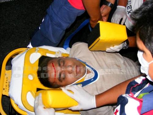 Al lugar acudieron elementos de Tránsito y Vialidad, y la ambulancia de la Cruz Roja Mexicana, quienes sacaron al conductor de los hierros retorcidos del vehículo y quien se encontraba inconsciente derivado del fuerte golpe que sufrió en el pecho y cráneo.