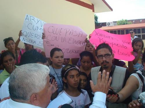 Con cartulinas en mano las madres de familia fueron atendidas por el jefe de la oficina regional de la educación José Luis Rivas Argaes, quien las invito a que mantuvieran cordura y respeto hacia la persona del gobernador y demás funcionarios estatales. Las mamás optaron por llegar a un entendimiento con la autoridad educativa y decidieron guardar sus cartulinas. La situación para los 350 niños del fraccionamiento jardines de Altamira se torna complicada puesto que la construcción de la primaria frente al conjunto residencial fue concluida hace mes y medio y hasta la fecha sus puertas continúan cerradas y sin nadie quien inscriba a los menores.