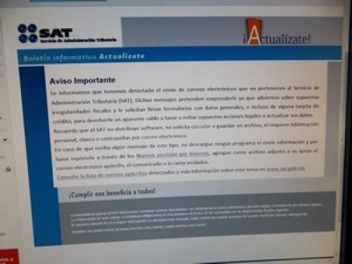 Al respecto mediante un aviso distribuido en medios de comunicación, el SAT informó que no es su política solicitar información personal, cuentas, claves o documentación de los contribuyentes vía correo electrónico.