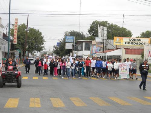 Esta primera caminata inició a las 09:00 horas en la plaza pública Esteban Baca Calderón, y terminó hora y media después en la plaza Longoria, frente a la catedral el Espíritu Santo, liderada por el sacerdote Rogelio Lozano Alcorta, y por la presidenta de Cáritas, Elda Elizondo.