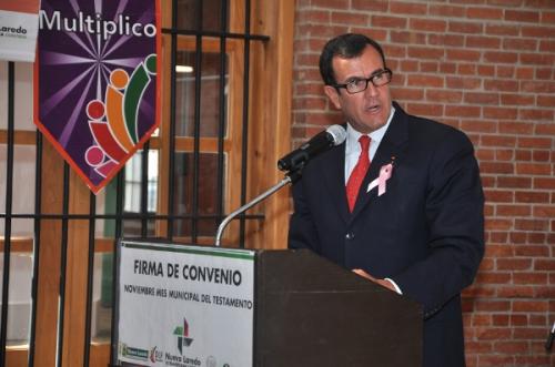 “La importancia que tiene éste acto por varias razones, en primer lugar porque Nuevo Laredo es pionero y ejemplo a seguir a nivel nacional de instrumentar un programa municipal de testamento como noviembre, mes municipal del testamento; entonces eso me parece muy adecuado, los notarios de Nuevo Laredo jalan, reducen sus costos y honorarios que tienen derecho a cobrar , en un 50% , y bueno esto hace ver el interés y la preocupación que tienen el Ayuntamiento, que tiene el DIF por procurarle bienestar a los habitantes de éste municipio, al dotarles de certeza jurídica en sus patrimonios”.