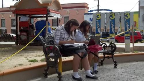 Las jovencitas que reciben sus estudios en este bachiller son Nicole Márquez y Andrea Nieto, ellas han mencionado que como viven un poco lejos del centro de Matamoros en la colonia Villa las Torres, se les complica viajar en pesera es por ello que realizan sus trabajos en la Plaza Principal.