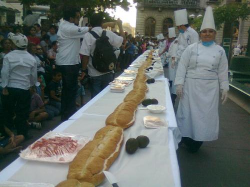 Tampico, Tamaulipas.-Más de 2,500 personas están presenciando la elaboración de la torta más larga del mundo en la plaza de Armas de Tampico, evento organizado por la Cámara Nacional de la Industria Restaurantera y Alimentos Condimentados (CANIRAC).