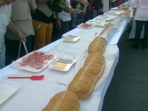 Son 108 alumnos de escuelas de gastronomía quienes participan en la elaboración de la torta de la barda más larga del mundo que tendrá 307 metros y esto será constatado por el notario público numero 161 Carlos Echazarreta Delgado.