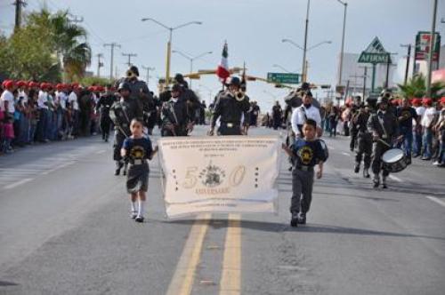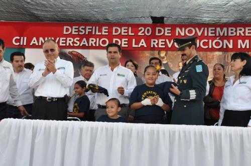 Reynosa, Tamaulipas.-Durante el desfile conmemorativo al 102 aniversario de la Revolución Mexicana, un grupo de integrantes del Pentatlón Deportivo Militarizado de la Sub- Sección Reynosa, efectuó un obsequio al presidente municipal de Reynosa Everardo Villarreal Salinas y además lo despidieron, pues el próximo año ya no presidirá el la parada deportiva del desfile.