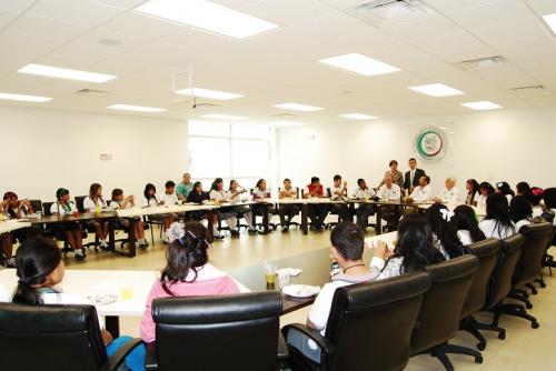 El diputado local Reynaldo Garza Elizondo fue su anfitrión, quien les ofreció un desayuno en uno de los salones de la sede legislativa, en donde fueron acompañados por los directivos escolares: Carlos Castro Medina (director general del Cobat- Tamaulipas), Pedro Angel Rodríguez Barrera (director del Plantel 7 de Cobat en Reynosa), César Chapa Maldonado (sub-director) así como Gabriela Echavarría (coordinadora académica).