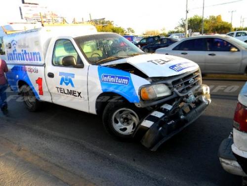 Reynosa, Tamaulipas.-La falta de precaución al conducir de un chofer de Telmex, estuvo a punto de ocasionar una tragedia al impactar su unidad, contra una de transporte de personal de una empresa maquiladora, hacia donde se dirigía la camioneta con personal de dicha negociación.