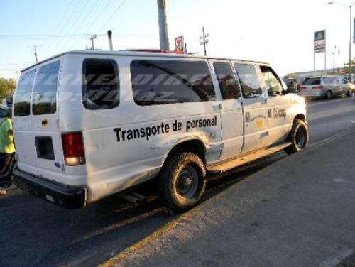 Fue entonces que se impactara contra una camioneta Ford Van Enconoline, color blanca, modelo aproximado 2000, placas de Tamaulipas que tripulaba personal de una maquiladora y que circulaba de oriente a poniente por el boulevard Hidalgo y que era conducida por el señor Ricardo Aragón, de 28 años de edad, quien es residente en la colonia San Valentín.