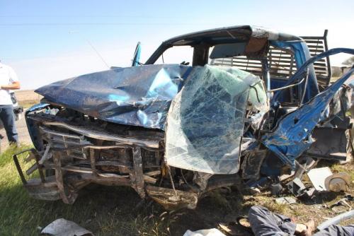 Reynosa, Tamaulipas.-Saldo de dos personas muertas y una gravemente herida, fue el resultado del tremendo encontronazo entre dos camionetas particulares, cuyos conductores se desplazaban a exceso de velocidad por lo que el impacto fue fuerte; siendo los hechos por la carretera a San Fernando a la altura del Ejido Periquitos.