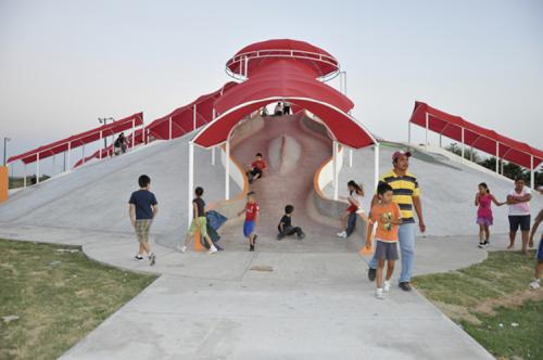 Este tipo de instalaciones recreativas, serán del mismo modelo que las construidas en el parque Polvo Enamorado y el Parque Narciso Mendoza. Cuentan con dos escalinatas, barandales, cubresoles y tres resbaladeros.