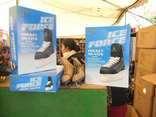 A pesar de que solo hay unos 300 patines, la mayoría son nuevos o de primer uso, de la marca Ice Force y especiales para hocky, prestados al ayuntamiento por la empresa que fue contratada para el montaje de la pista, Ice Montain.