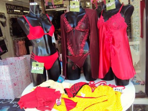 Una de esas tiendas ubicadas en la Zona Centro, ofrece ropa interior de color rojo y amarillo, sus precios van desde los 100 pesos a un conjunto de baby doll que cuesta 550 pesos, dependiendo el grado de animosidad de la persona y que tan sexy desea verse al recibir el primer día del 2013.